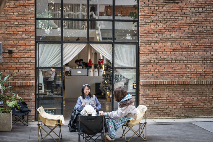 12月16日,人们在云南省曲靖市“重机印象”创意园一处咖啡馆内喝咖啡。新华社记者 王冠森 摄