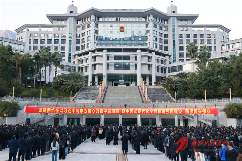 1月4日,新年上班第一天,怒江州在州级行政中心同心广场举行“升国旗唱国歌”活动。