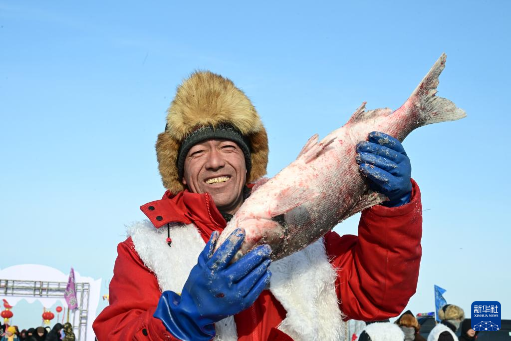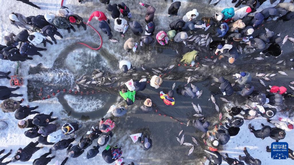 1月10日,黑龙江省肇东市举行大似海冬捕渔猎文化节,来自天南地北的游客在冬捕活动现场观看冰窟捕鱼,欣赏民俗歌舞,尽享北国风情。(新华社发 杨威摄)