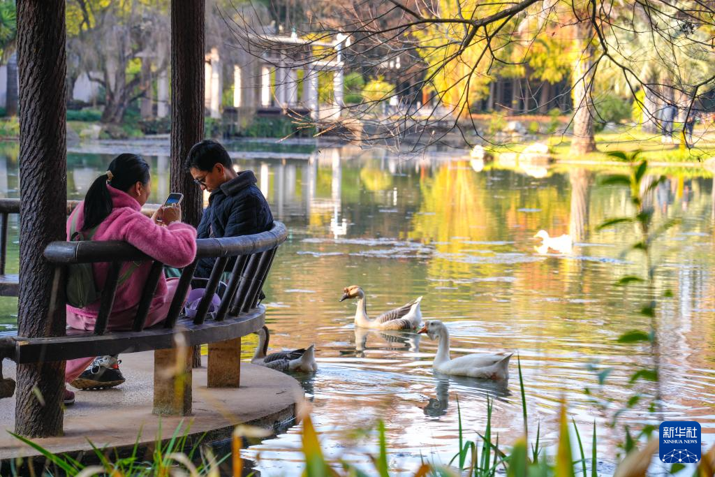 1月10日,游人在昆明植物园休闲。新华社记者 高咏薇 摄