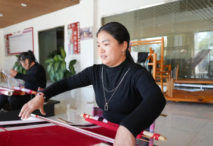 走进生产车间,各色丝线如彩虹铺陈,汉族、怒族、独龙族妇女与手工爱好者围坐一堂,整理经线、穿梭纬线、修剪毛边,指尖翻飞间,独龙族传统图腾纹样在织物上渐渐浮现。车间里,不同民族的姐妹们互帮互学、笑语盈盈,文化在针线交织中深度交融,情谊在协作互助中愈发深厚。