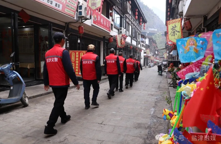 盐津县公安局豆沙派出所所长赵鑫介绍,作为国家级“枫桥式公安派出所”,豆沙派出所始终秉持“依靠群众、发动群众、团结群众”理念,组建“银发义警队”。这支由德高望重共产党员、退休干部、社区居民组成的队伍,承担社区巡逻、纠纷调解、游客引导等职责,成为派出所联系群众的关键纽带,助力警民协同共治,守护古镇平安。