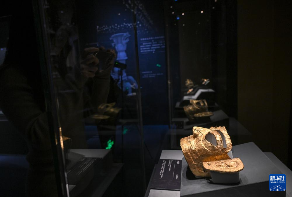 1月18日,观众参观展出的金面具。新华社记者 金良快 摄