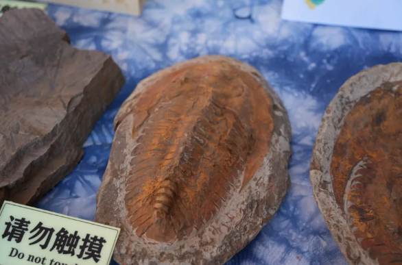 活动还没正式开始,展区已人气爆棚! 最吸引眼球的,莫过于孩子们自己发现的“宝贝”。每块校园化石都被小心地安置在展示桌上,旁边清晰地标注着“发现者:XXX班XXX”、“发现地点:躬耕园XX角落”,配上放大镜和“轻拿轻放”的提示,俨然一个小小“校园考古”成果展。