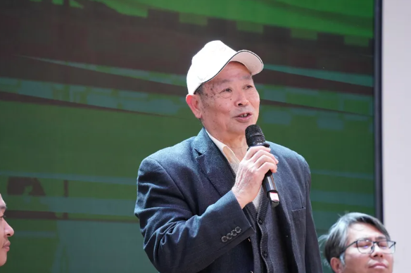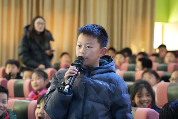 主会场里,聚光灯打在了七四班的白小柏同学身上。作为校园化石的“明星发现者”,他走上讲台,分享了自己“挖宝”的故事——校园角落的意外发现,课下翻书查资料的执着,和伙伴们继续寻找时的趣事与困惑。他手里拿着那块自己发现的化石,配合着清晰的照片,讲述得真诚又带点小兴奋,台下掌声不断。这不仅是一个发现的故事,更是少年探索精神的闪光,为接下来的科普讲座埋下了最好的伏笔