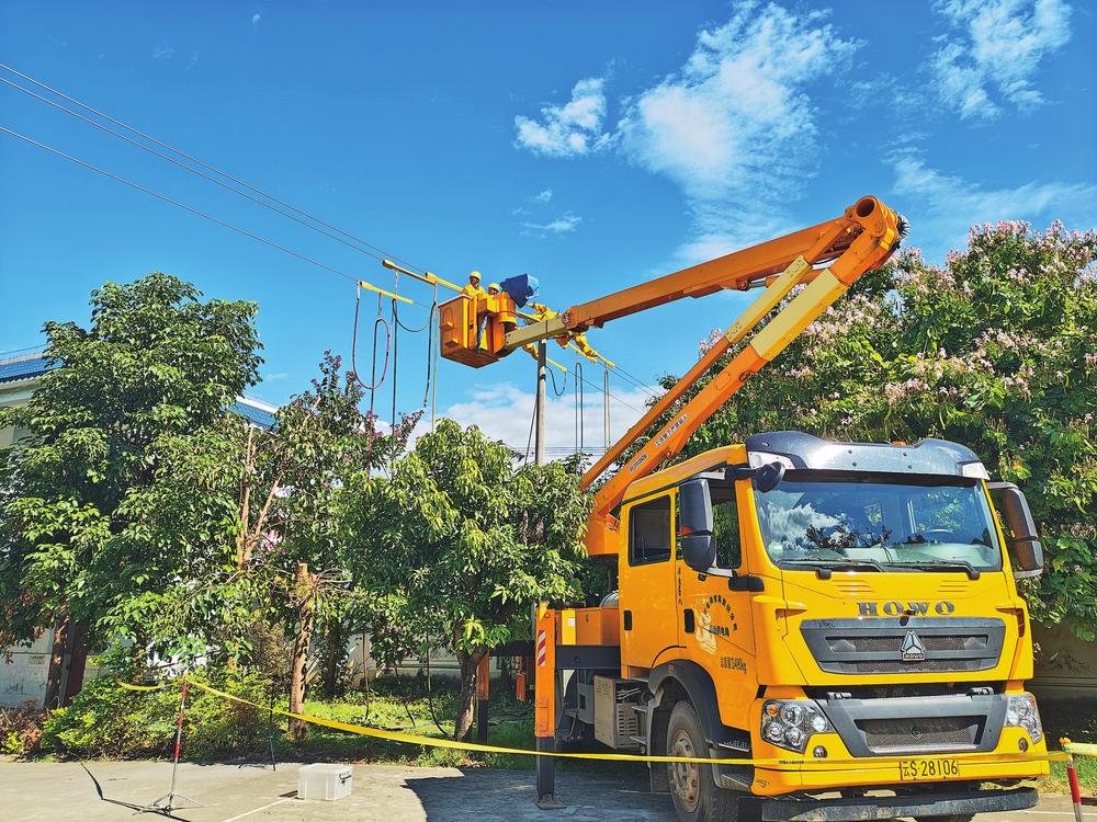 供电人员开展带电作业。 李时晖 摄