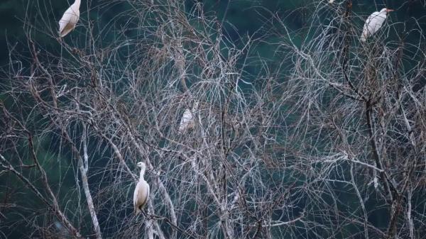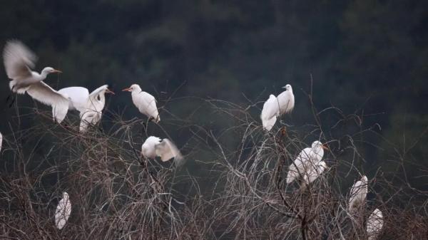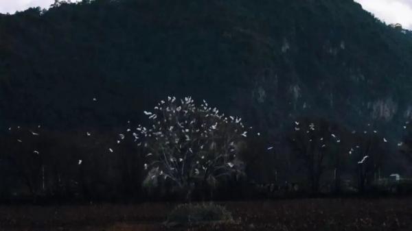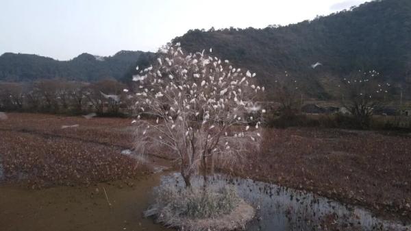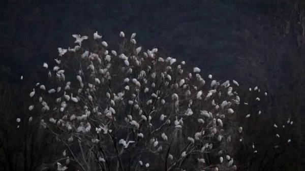 二十分钟后,一群群白鹭从四面八方陆续飞回,不过十分钟光景,整棵柳树便从树梢到枝干、从外层到内里,都落满了白鹭。这一幕,恰似一株千年古树汲取了天地灵气,刹那间焕发出惊艳的光彩。