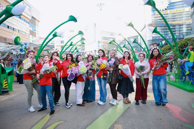 在斗南花市鼎沸的人潮中,“百元购花挑战”将全天体验推向高潮。面对姹紫嫣红的花海,选手们兴致勃勃地运用流利的汉语与摊主们讨价还价,摊主们笑着接招,更在成交后大方附赠一两扎花束,用最质朴的方式传递着云南人的热情。“看到他们这么喜欢我们的花,心里高兴!”一位花商一边细心包装一边笑着说:“这是咱们云南的待客之道。”选手们怀抱怒放的向日葵、娇艳的玫瑰、缤纷的满天星、雅致的绣球……满载而归,脸上洋溢着成就感与喜悦。那一束束额外赠与的鲜花,是春城人民给远方客人最热情的“拥抱”。花香弥漫间,语言与文化在此刻达成了无需翻译的共鸣。