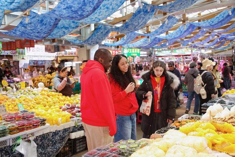 一踏入篆新农贸市场,昆明最鲜活的日常扑面而来。缤纷蔬果整齐铺陈,特色熟食香气四溢,吆喝声、讨价还价声交织成最地道的市井交响。在法餐厅主理人文森特的带领下,选手们用流利的汉语向摊主询问食材产地、做法与价格,让热闹的市井成了最生动的汉语课堂。这不仅仅是一次简单的采买,更是一堂在烟火气中读懂春城生活哲学的行走课。