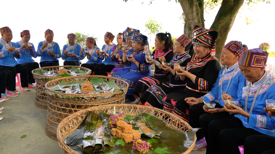 美食上桌,妇女们围坐成圈,手中捧着刚做好的米花,耳畔响起悠扬婉转的山歌。清甜的米香混合着醇厚的蔗香在口中化开,歌声里是对丰收的喜悦、是对新年的期盼。“每年过年都要做米花,这是刻在骨子里的年味。红糖甜,生活更甜!”一位村民笑着说道。