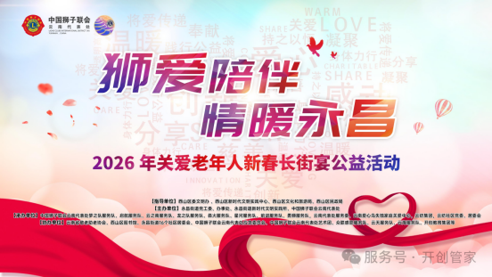 昆明信息港讯 1月30日,春城昆明暖意融融。在这个充满希望的季节里,一场关于爱与陪伴的盛宴在西山区永昌街道温情上演。由西山区委文明办、西山区新时代文明实践中心、西山区文化和旅游局、西山区民政局指导,永昌街道党工委、办事处、永昌街道新时代文明实践所与中国狮子联会云南代表处联合主办,永昌街道16个社区居委会协同承办,开创教育集团等38家公益企业鼎力协办的 “狮爱陪伴 情暖永昌——2026年关爱老年人新春长街宴公益活动”盛大启幕。