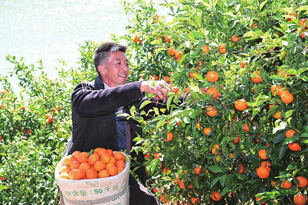 永胜县果农刘云高在采摘柑橘。云南日报通讯员赵庆祖/摄