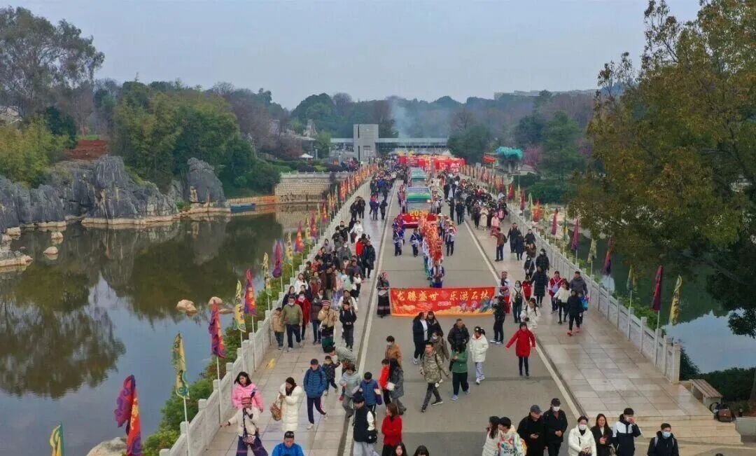 2月17日(大年初一)下午14:00-16:00,一场盛大的“欢欢喜喜过大年”群众文化游演将点燃石林!巡游队伍将从县城双龙广场出发,行经阿诗玛环岛、石林大酒店环岛、石林中路、东山路、莲花路、阿诗玛北路,一路欢歌,全城沸腾。