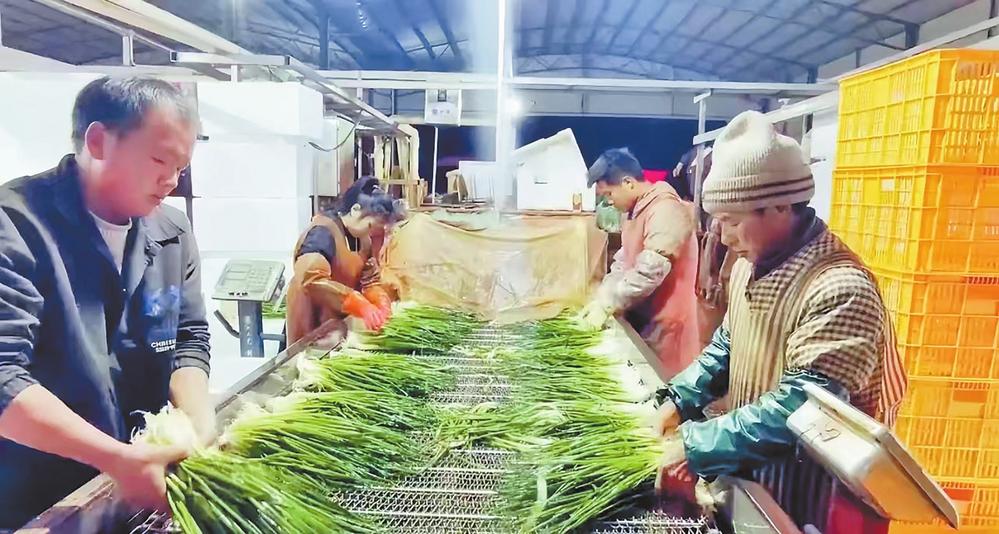 泸西县群众在分拣车间清洗小香葱。云南日报通讯员王成林/摄