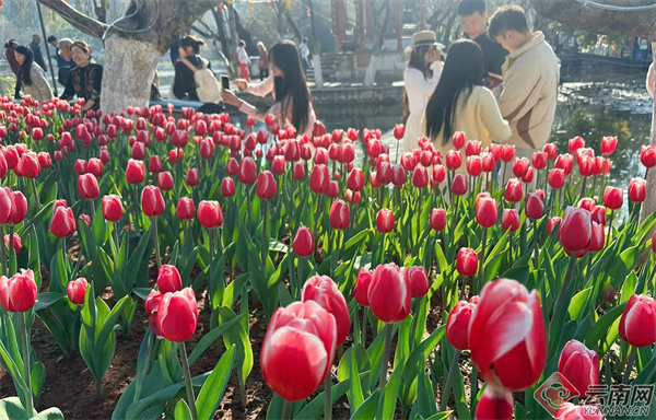 今年,公园的郁金香栽种规模再创新高,总面积约4500平方米,栽种区域主要为东路、南路、九龙池等,品种也不断丰富,有“彩霞”“红灯笼”“幸福一代”“水晶美人”等26个品种约20.04万株郁金香以及4万株中国水仙、虞美人等时令花卉,花卉总种植面积预计达5000平方米。还引进了“黄饰边”“紫饰边”“紫白边”“红白火焰”等多种新颖花色,丰富观赏层次。同时,在南门、西门用郁金香布置融合中华民族传统文化与园林艺术的打卡景点,寓意新春红火、美满团圆。
