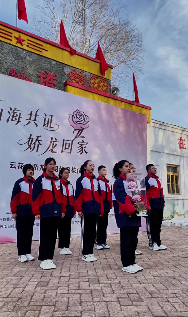 2月4日上午11时,在新疆伊犁昭苏县灯塔知青馆娇龙厅外,“山海共证·娇龙回家”云花“娇龙”接花仪式举行,“娇龙”月季从彩云之南到西部边疆,历经4000多公里跋涉来到新疆昭苏,安放于此。