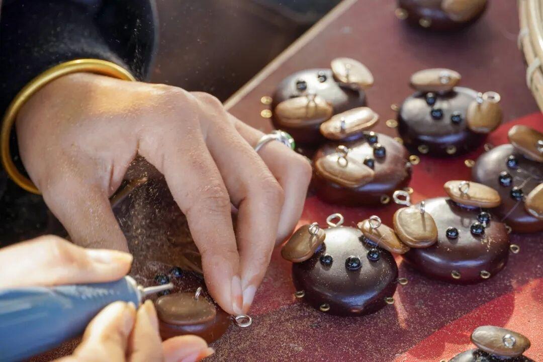打磨豆荚娃娃。陇川县融媒体中心 赵紫丹 摄