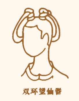 这种发髻将头发分成两股,用丝绦束缚成环形,高耸于头顶或头之两侧,有飘然望仙之状,因此被称为“双环望仙髻”。它流行于初唐及盛唐时期,以少女梳妆最为常见,体现了唐代雍容华贵而又灵动飘逸的审美风尚。