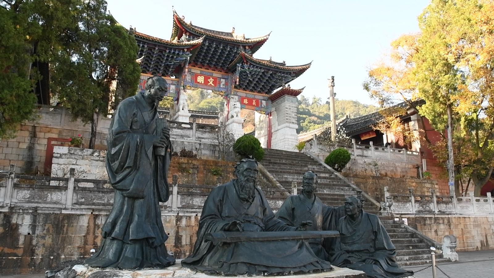“文庙定期举办传统礼乐展演、‘三礼’活动等,延续‘礼乐名邦’文脉;以秀山古建筑群为核心,结合‘匾山联海’特色打造沉浸式游览线路,去年完成‘德高行远——朱德通海居所展陈’布展,再现朱德在通海的革命历程与生活场景,让红色文化与历史文脉交融。”县文化和旅游局文博股股长罗苑梅说。