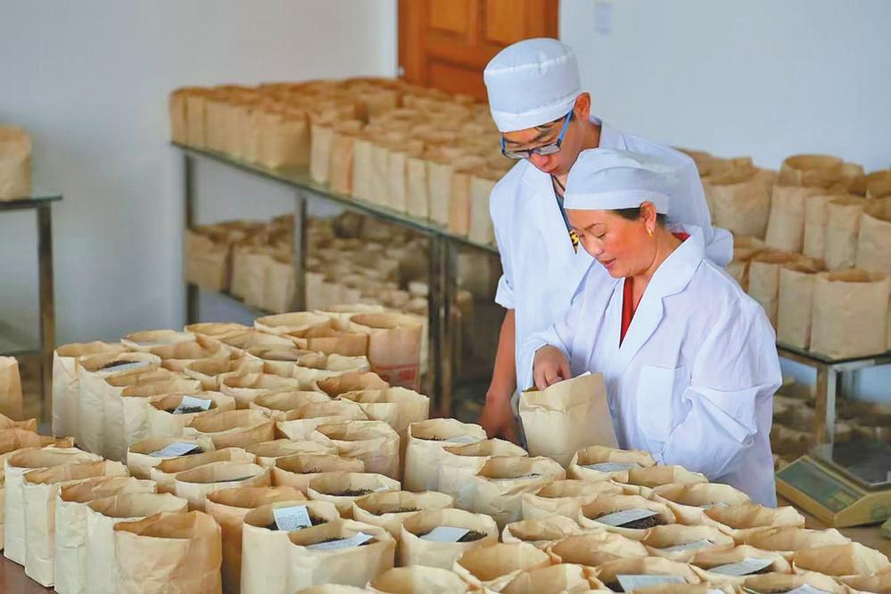 大益勐海茶厂拼配师在研配普洱茶。 受访企业供图