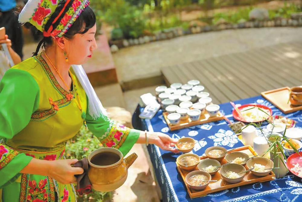 《蛮书》《徐霞客游记》等曾记载过这一古老茶饮,其源于南诏宫廷,讲究“三道”“六则”“十八序”。敬茶时,举案齐眉;饮茶时,凤凰三点头,说一些吉利的话;结束时,要拱手道谢,行鞠躬礼。仪式感十足,承载着大理白族的民俗风情与人文底蕴。