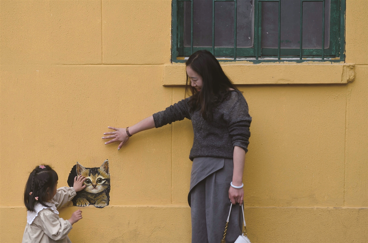 记者走访发现,“这很昆明”小黄楼墙面上,一只“破墙而出”的小狸花猫最为传神。此外,橘猫、花猫或蹲或趴,神态各异,仿佛在与路人互动。不少市民、游客纷纷停下脚步,用镜头定格这份可爱。“这里的墙绘太有创意了,和老街的氛围特别搭,随手一拍都是文艺大片。”正在拍照的市民李女士说。