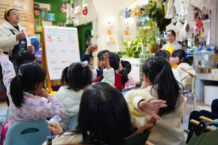 活动现场,温馨的阅读区内座无虚席,各类精选的优质绘本和科普读物琳琅满目。孩子们在父母的陪伴下,或席地而坐,或伏案共读,沉浸在奇妙的书本世界里。与以往不同的是,本次活动特别设置了“寻春分享”环节,让静态的阅读“活”了起来。