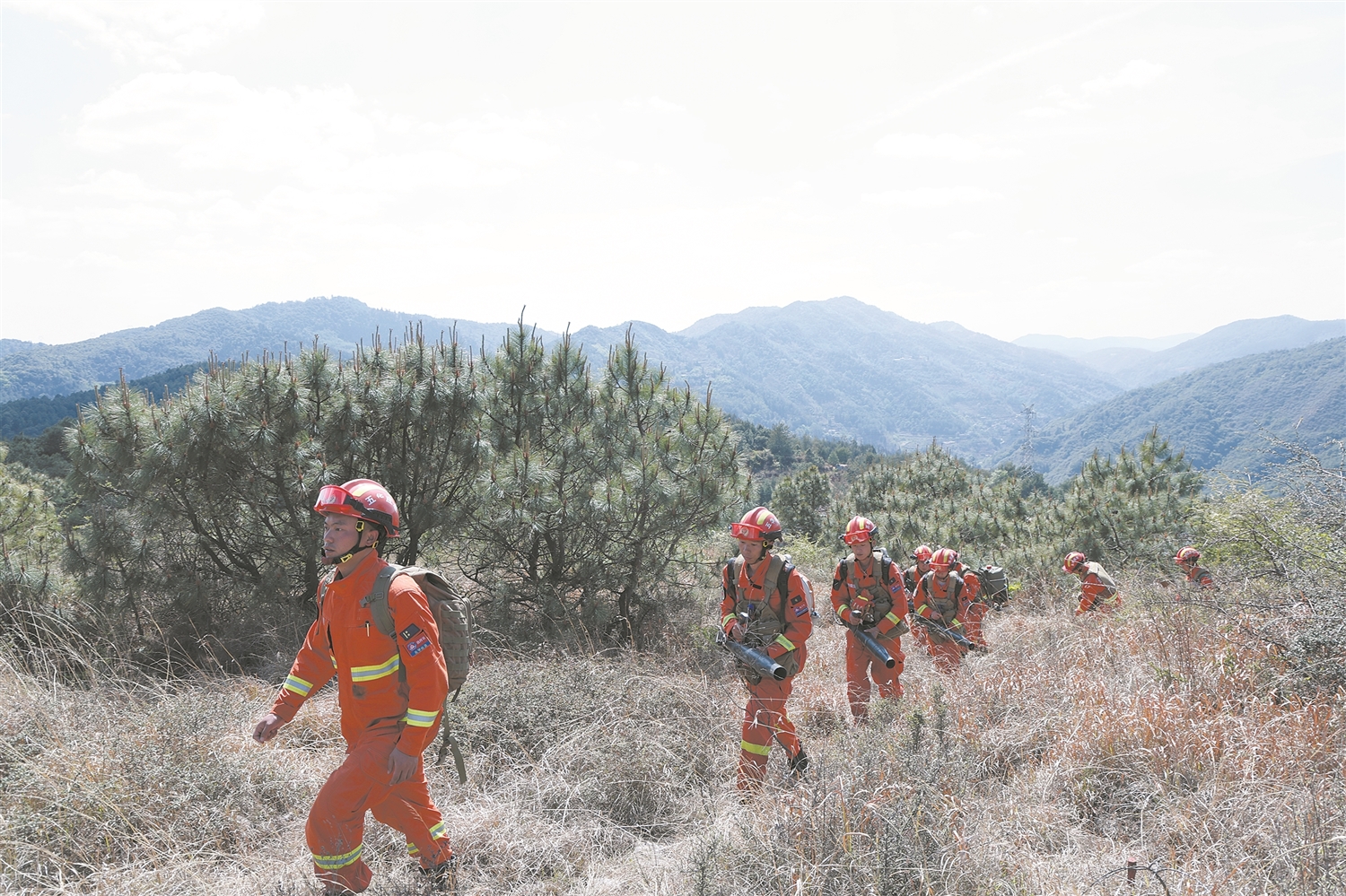 昆明信息港讯(昆明日报 记者杨艳辉) 清明节假期,持续晴朗的天气让森林火险等级攀升,在昆明乌龟山,森林防火应急小分队开展携装巡护。