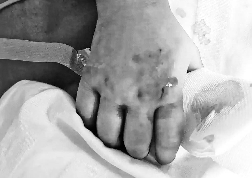 女童手部淤青并留有毒蛇牙印