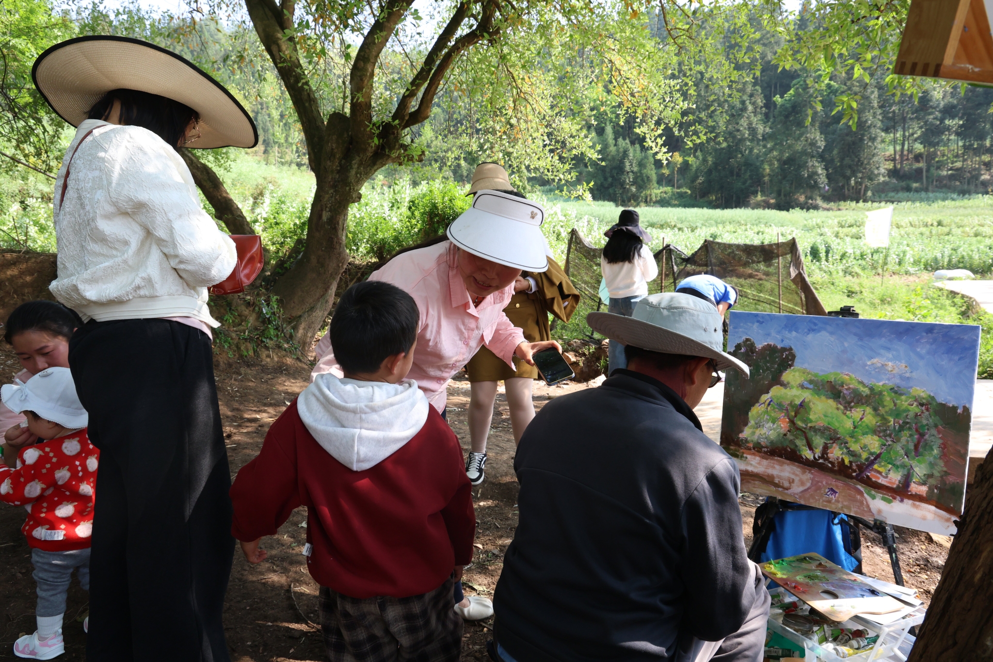 在古树下、田埂边,随处可见身着汉服或春装的游客,有的在花海下载歌载舞,有的在忙着网络直播,有的在搞摄影和绘画创作,大家纷纷摆出各种姿势拍照留念,欢笑声与花香交织在一起,构成一道亮丽的风景线。