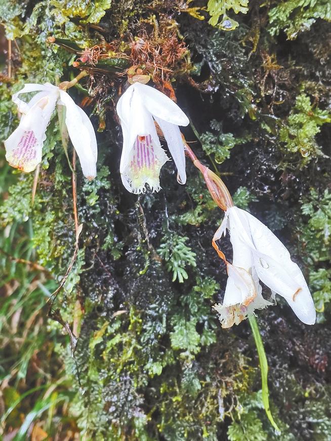 近日,高黎贡山国家级自然保护区保山管护局腾冲分局工作人员在开展日常巡护时,发现一群随风起舞的“白色蝴蝶”。经专家鉴定,确定为兰科独蒜兰属珍稀附生草本植物矮小独蒜兰。