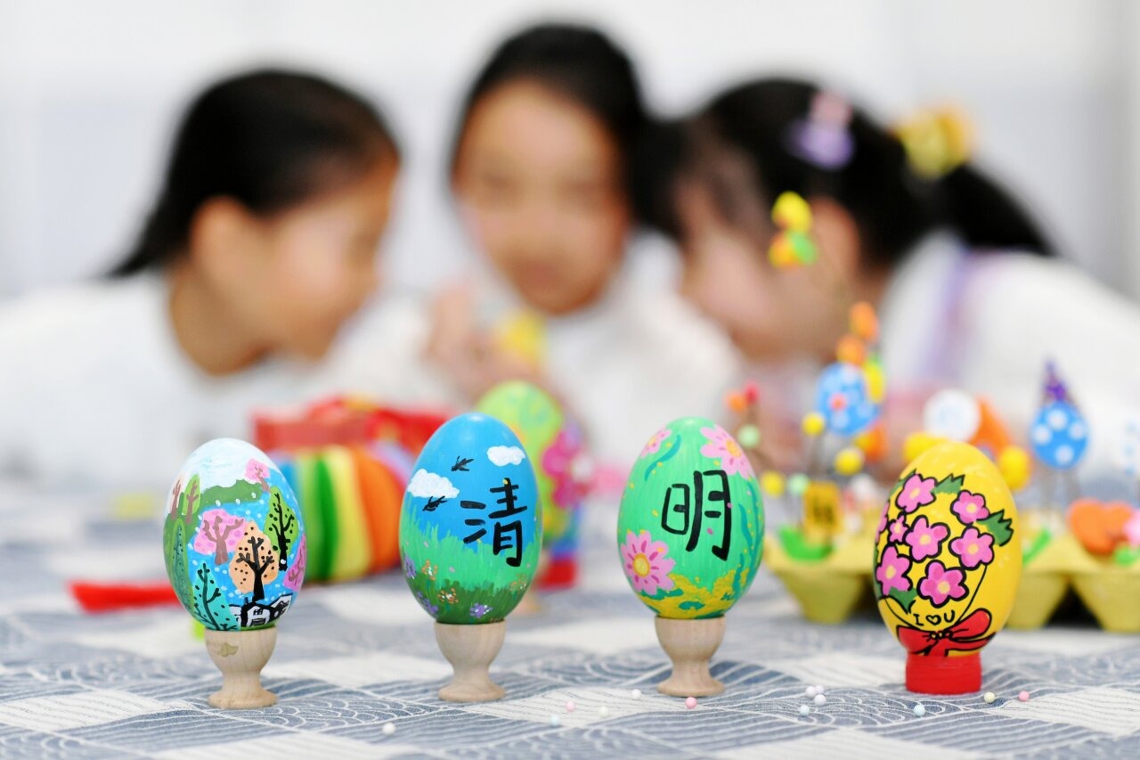 清明节临近,山东省青岛市市北区杭州路小学开展“多彩民俗迎清明”主题活动,孩子们通过做青团、绘制五彩蛋等形式,传承清明民俗,感受中华传统文化的魅力。(通讯员 王海滨 摄)