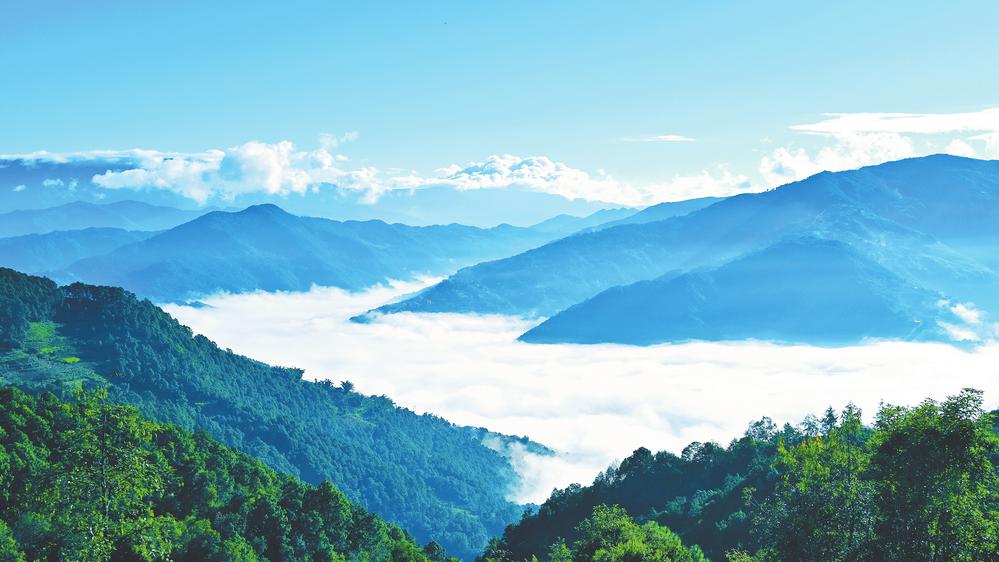 琼英村白云缠绕绿水青山。记者李春林 摄
