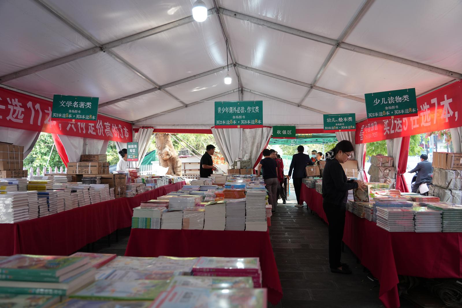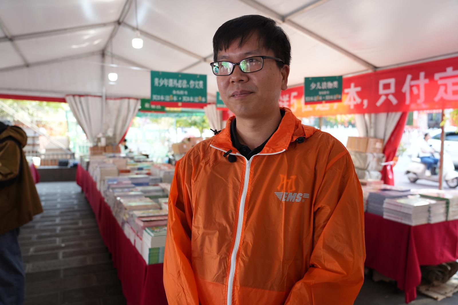 芒市邮政快递员杨震:我孩子每天都有半小时课外阅读的需求,平时买书基本都是线上购买,还会担心价格和版权的问题,这次线下活动力度那么大,买三本送八本,我准备带着孩子一起来挑选课外读物。