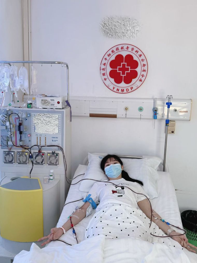 4月20日,在920医院血液科的采集室里,小钶安静地躺在床上,血液通过管道缓缓流动,分离出的造血干细胞悬浊液一点点汇集起来。