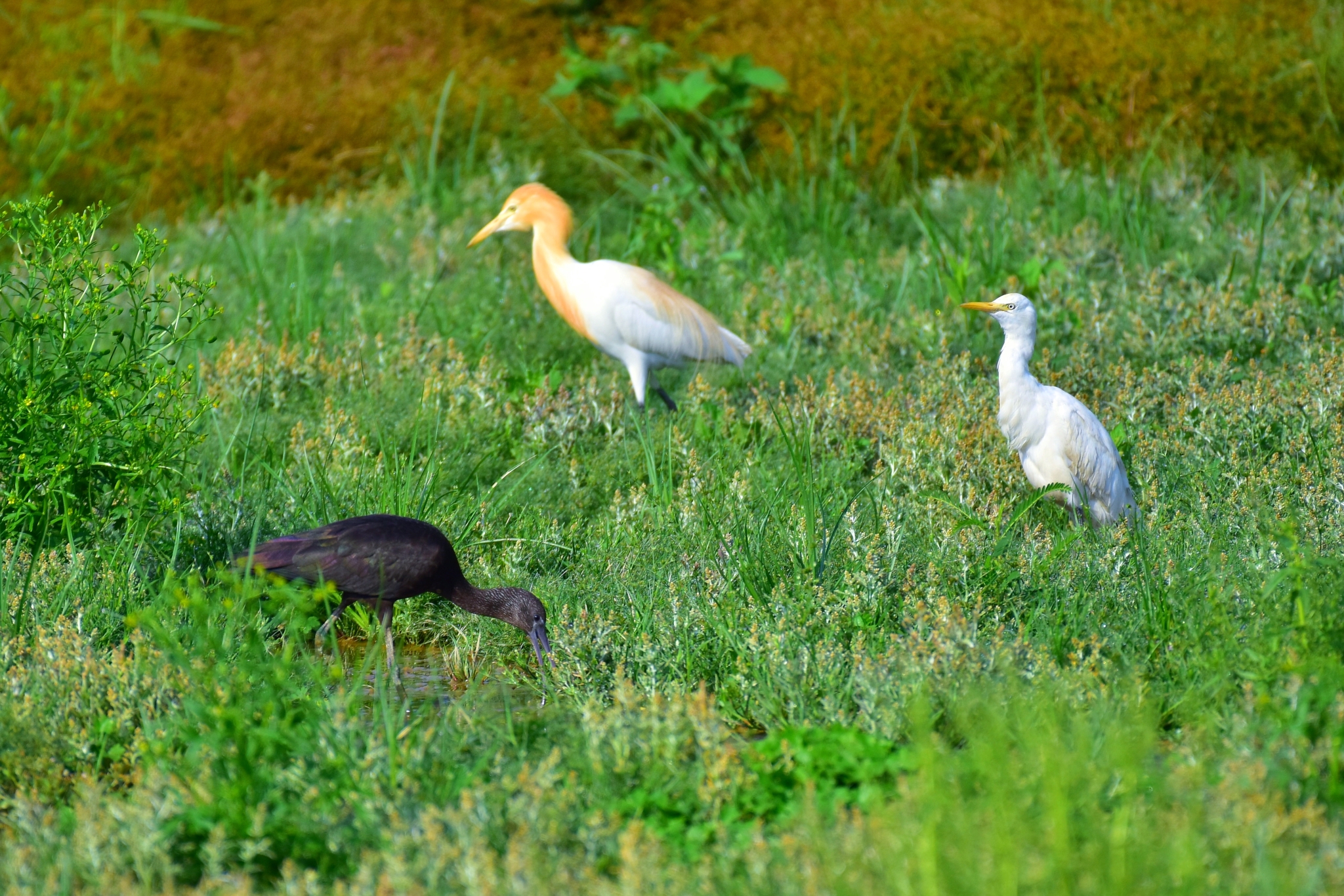 此次发现地爱华镇芦蒿箐,水系充沛、植被完好,湿地生境优越,为彩鹮提供了理想的觅食与栖息环境。拍摄画面显示,两只彩鹮与白鹭、牛背鹭友好相处,时而在浅水中缓步踱步,时而低头用长喙探觅水生昆虫、小鱼及软体动物,姿态从容警觉。