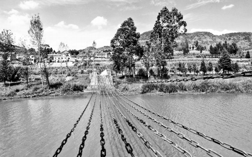 修复前的海丹铁索桥。