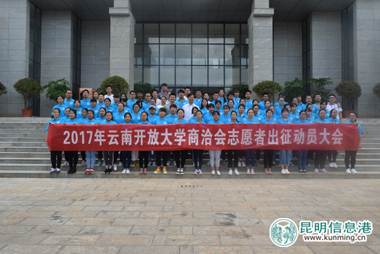 昆明信息港讯 实习记者王跃锦 6月9日,云南开放大学(以下简称“云开大”)举行2017南亚东南亚国家商品展暨投资贸易洽谈会(以下简称“商洽会”)志愿者校内出征动员大会。记者获悉,该校共有101名“小白云”为本届“商洽会”提供志愿服务。