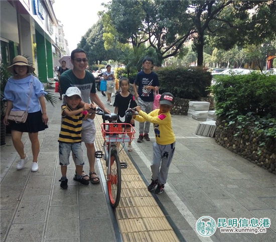 昆明市正在创建全国文明城市,因此这次开展的社区志愿者活动中也组织了“文明倡导小队伍”,让家长和小朋友一起合力整理乱停乱放的自行车,为“创文”尽一份力。家长在后面抬着自行车,小朋友在前面配合推着,一些行人看到后也后纷纷加入到志愿者队伍中参与推车,就这样社区里很多被乱停乱放的自行车,也一辆一辆地回到了指定区域。