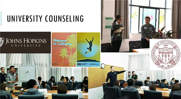 学校提供专业的大学升学指导,从进入高中阶段学习开始,就帮助学生规划大学申请事宜。2019年秋冬季,来自约翰.霍普金斯大学、南加州大学、全球酒店管理排名第一的瑞士洛桑酒店管理学院等近20多个欧美大学招生官亲自来到世青校园,跟同学们和家长们面对面交流。
