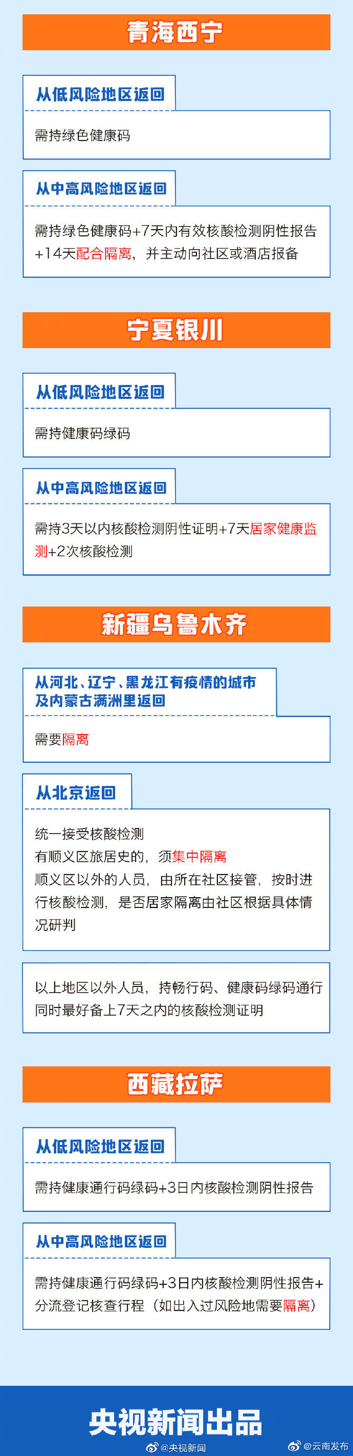今年春节,返乡人员需要隔离吗?各地最新情况汇总↓↓提醒:疫情尚未结束,防护不可大意,尽量减少流动!#牛年就地过年#(@央视新闻)
