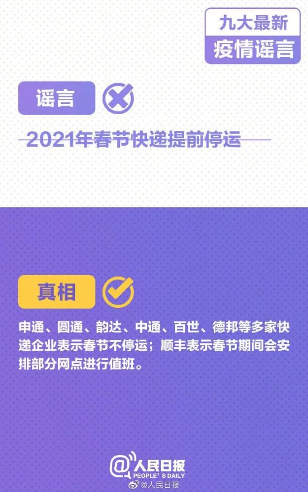 99.9%的新冠病毒十分钟被茶水杀灭、新冠疫苗接种开放网站预约、2021年春节快递提前停运、春运直接被“取消”……年关将至,又有许多关于新冠疫情谣言在网上流传。再次倡议,疫情当前,不造谣、不信谣、不传谣!