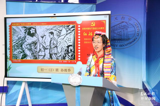 其中,4位学生代表——初一(2)班孙雨乔、初一(4)班刘茗月、初一(14)班任世瑀、初一(18)班阮珺然分别介绍自己的作品:《井冈山会师》、《天下国家》、《铭记历史 照亮未来》、《红船扬帆 希望工程》,深情讲述不同时期中国共产党的卓越奋斗与丰功伟绩,激扬文字,意气风发,展现了新时代云附少年不忘历史、接续奋斗的决心与行动。