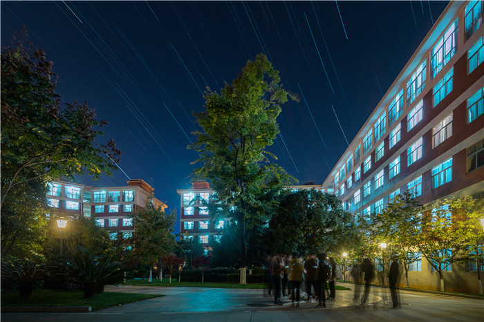 学校的公寓式学生宿舍颇具规模,其环境优美,宜居宜学,配置的房间是四人间,房间内有附带24小时热水淋浴设备的卫生间,每层楼设有公共卫生间、洗衣间和自习室。学生公寓生活区有庭院亭榭、林荫小道、芳草绿茵等,还设有工商银行ATM自动取款机和小型超市等服务设施。