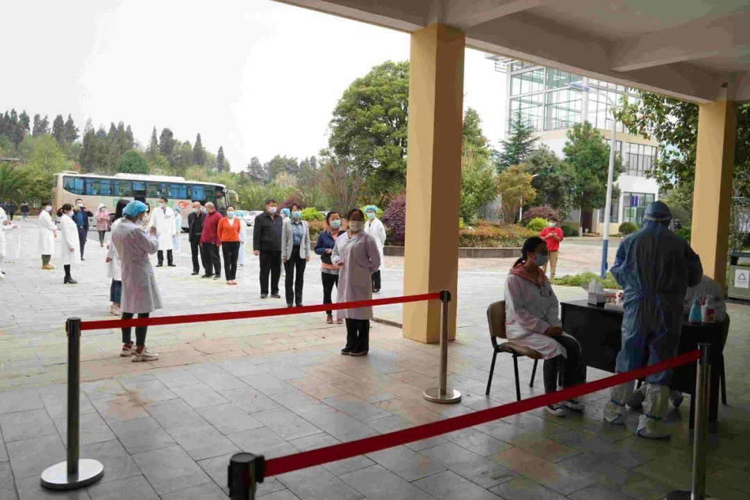 昆明市精神病院结合每周定期两次核酸检测工作,开展了核酸采样应急演练,按照“六个立即一个及时”的原则,快速统筹调度资源,立即进行流调溯源、隔离、封闭管理等工作,并立即开展昆明市精神病院全员核酸检测采样工作,现场设置有等候区、缓冲区、登记区、待采区和采样区,大家按1米间隔有序等候,全程佩戴口罩,按照1:10混采进行咽拭子采样,每一个采样完成之后,采样工作人员均进行手部和环境消毒,避免交叉感染。采样结束后所有样本由我院化验室进行新冠病毒核酸检测。核酸采样小组对采样现场产生的医废垃圾进行收整消杀、送至指定医疗废弃物暂存区,现场垃圾清运后立即对采样区域环境开展终末消杀。