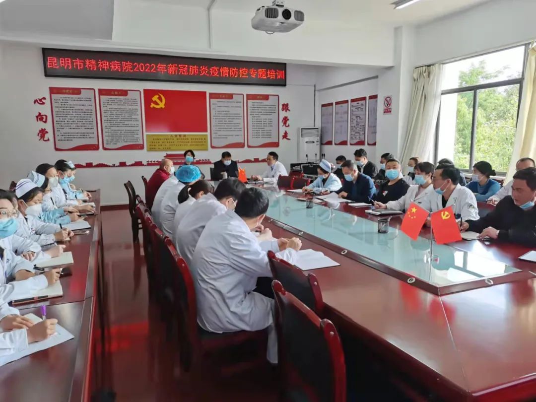 由昆明市精神病院疫情防控工作领导小组办公室张炳奎主任,就昆明市精神病院疫情防控的关键环节,主要防控工作等进行培训,分析了主要风险点及工作注意事项等,通过开展疫情防控工作专题培训,强调了全体医务人员要高度重视疫情防控,坚决不能松懈,将全院职工培训学习落到实处,要求全员规范扎实掌握疫情防控知识与技能,筑牢职工及患者生命安全的坚固防线。