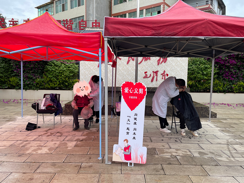 我院工作人员为社区居民及康复者免费理发,这既为居民带来了福利,也促进了社区居民养成个人健康与个人卫生好习惯。