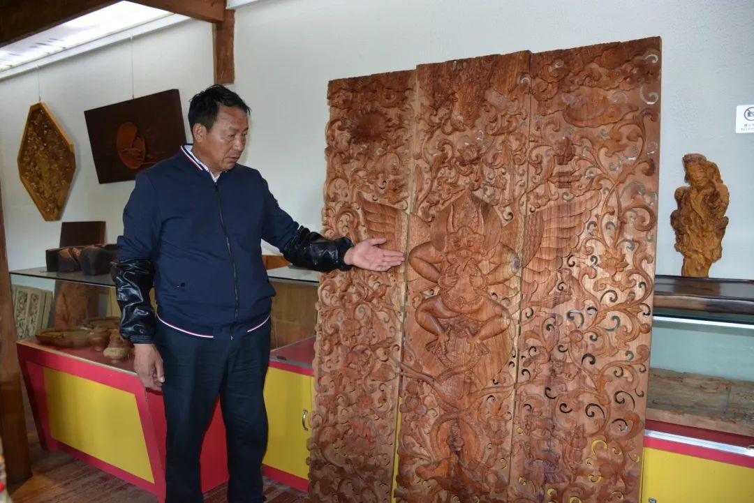 他,从事木雕行业已经整整38年,但依然对木雕保持着热情。虽然现在有了自己的公司和团队,但他还是会经常拿起雕刻工具进行创作。他就是丽江市雕刻艺术协会会长、市级非物质文化遗产传承人赵振金,一名土生土长的纳西族木雕手艺人。