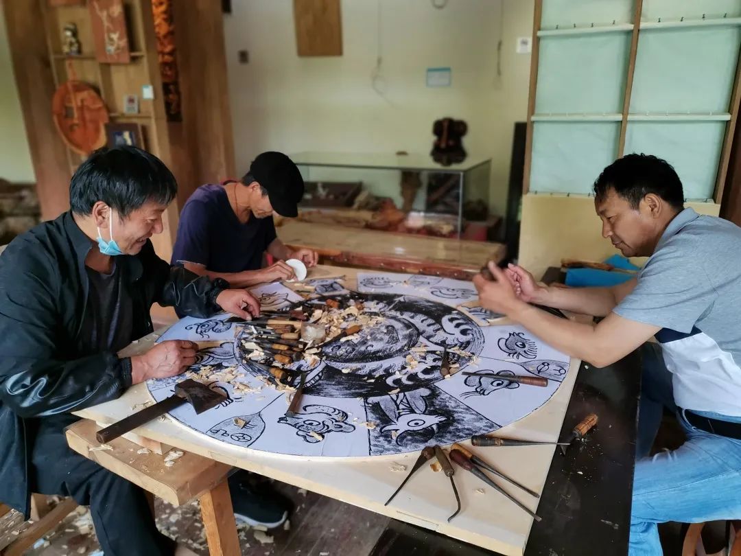 到后来,随着生意越来越好,十多个员工加班加点还是满足不了市场需求。为此,赵振金开始发动组织大具乡其他村的村民开始做木雕,图稿由他设计提供,村民们买材料自己雕,事先确定价格,雕好就送到店里,当场结算付款,从不拖欠货款,甚至遇到家里办事急需用钱的,赵振金也会预支给他们钱。后来,全村100多户都被他带动起来,村民们雕刻的产品源源不断地送到店里。
