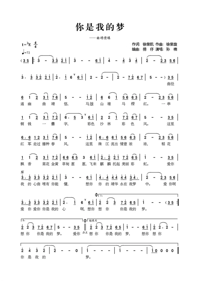从“曲径通幽”到马雄山、会泽铜钱文化、爨文化、彩色沙林、珠江源、油菜花……一首由徐荣凯作词、徐荣旋作曲、孙楠演唱的歌曲《你是我的梦》,旋律清扬、歌词优美、意境深远,可以说是囊括了曲靖所有的文旅特色,极富诗意,余味无穷。